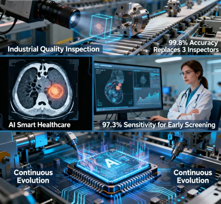 The portfolio spans classification, object detection, instance segmentation, and action recognition. Industrial quality-inspection models infer within milliseconds at 99.8% accuracy, replacing three human inspectors per camera; medical lesion models reach 97.3% sensitivity, boosting early screening. Incremental-learning pipelines allow non-stop absorption of new defect samples on the line, evolving accuracy weekly and lowering repurchase costs.