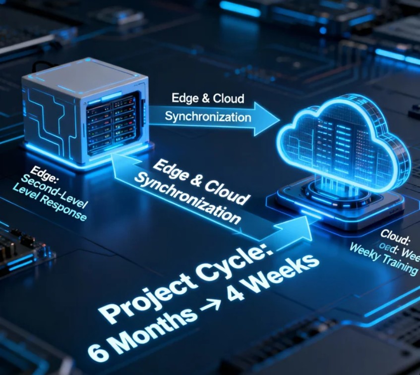 Intelligent data steering processes high-frequency privacy-sensitive tasks locally while the cloud handles long-cycle training and global optimization. Critical data responds in milliseconds on-site; non-sensitive features upload encrypted, forming a closed loop. Edge models refresh weekly, cloud capacity scales continuously, cutting AI project roll-out from six months to four weeks in factories and retail chains.
